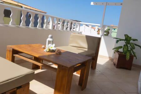 Sehr schöne neu eingerichtete Studiowohnung für ein oder zwei Personen. Sie ist ausgestattet mit allem was man für einen Aufenthalt auf Sal benötigt. Die Wohnung liegt im zweiten Stock und hat einen großen Balkon mit gemütlichen Sitzmöbeln.